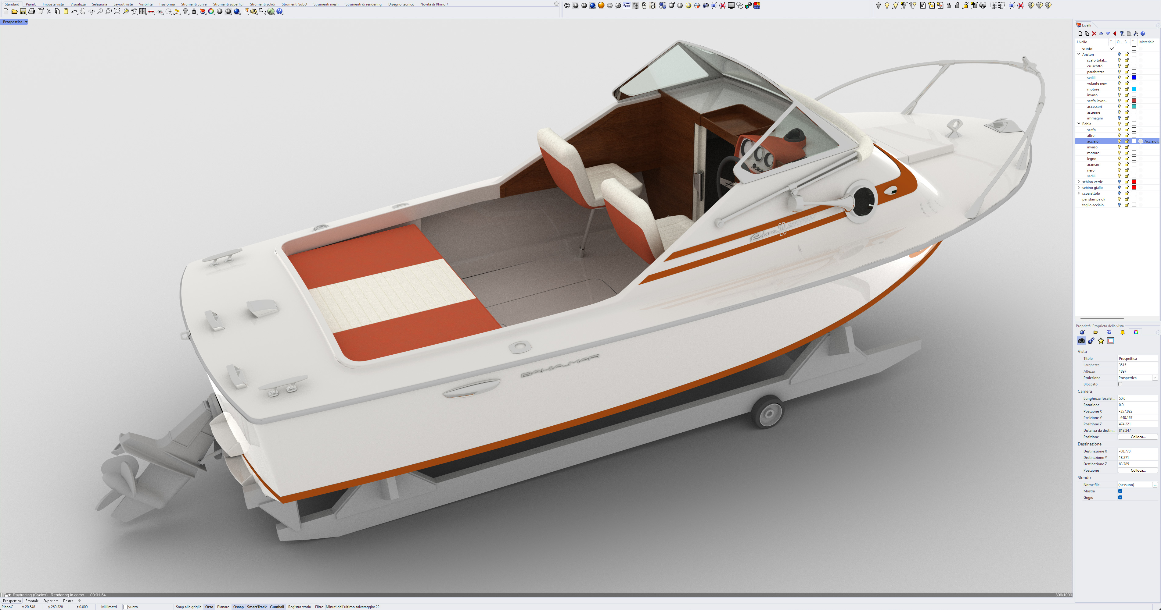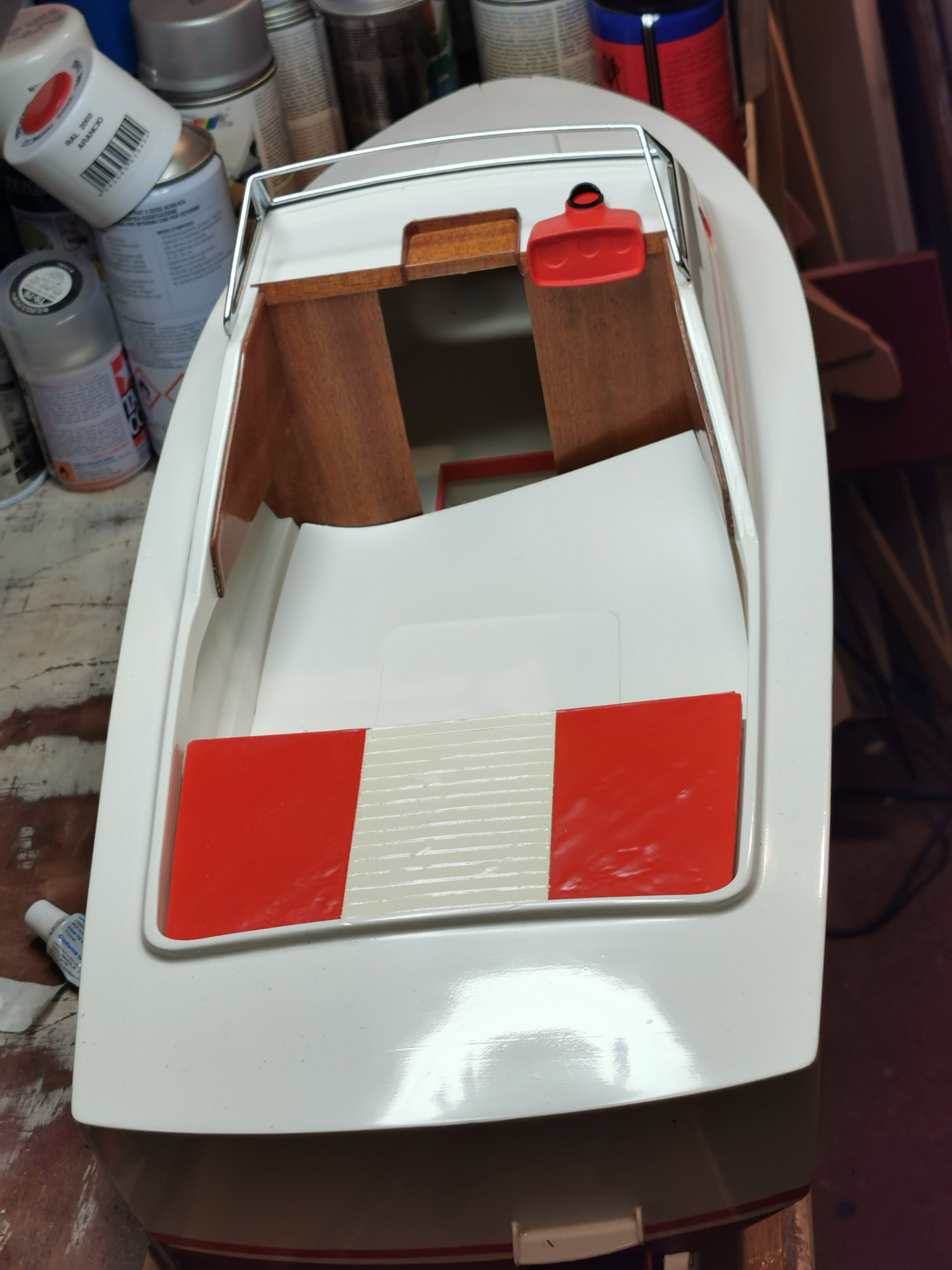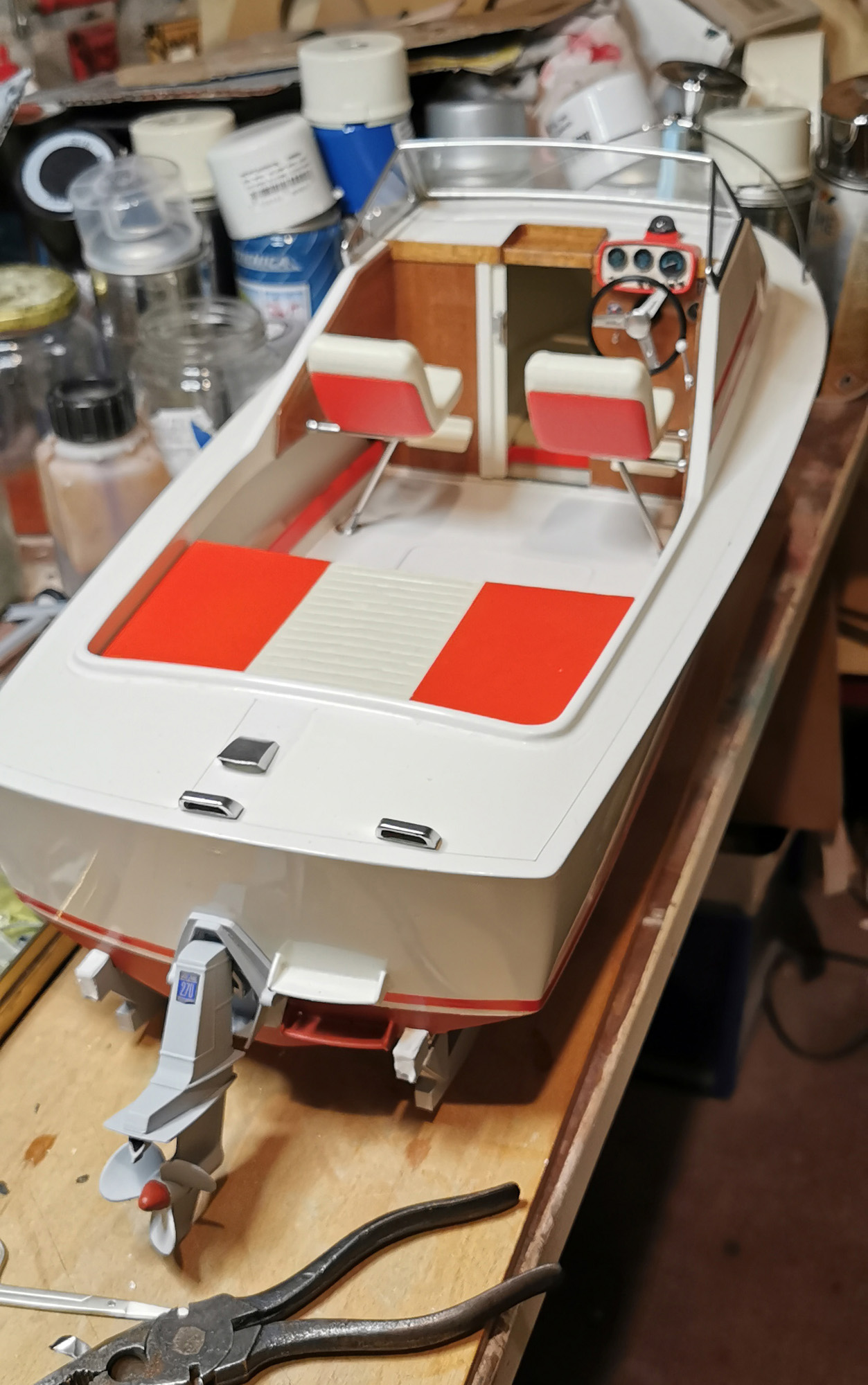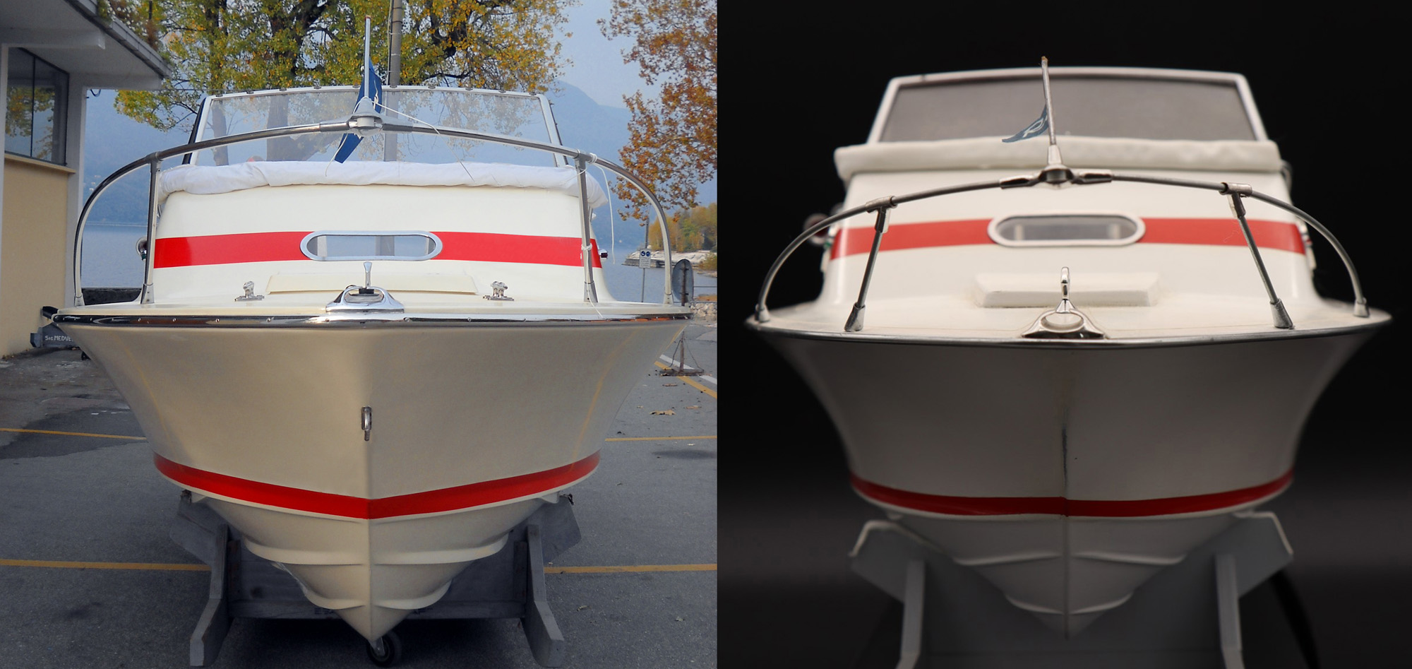 The model of the outdrive leg, always by Volvo Penta, was changed on certain versions starting with # 72. The instrumentation consisted of three VDO dials, whose design was a development of those designed for the 1962 Aquarama. Redesigned in this way they were to be subsequently fitted to the Aquarama Special and the Olympic. The Barilani designed wheel, with three aluminium spokes, was of Momo manufacture.
