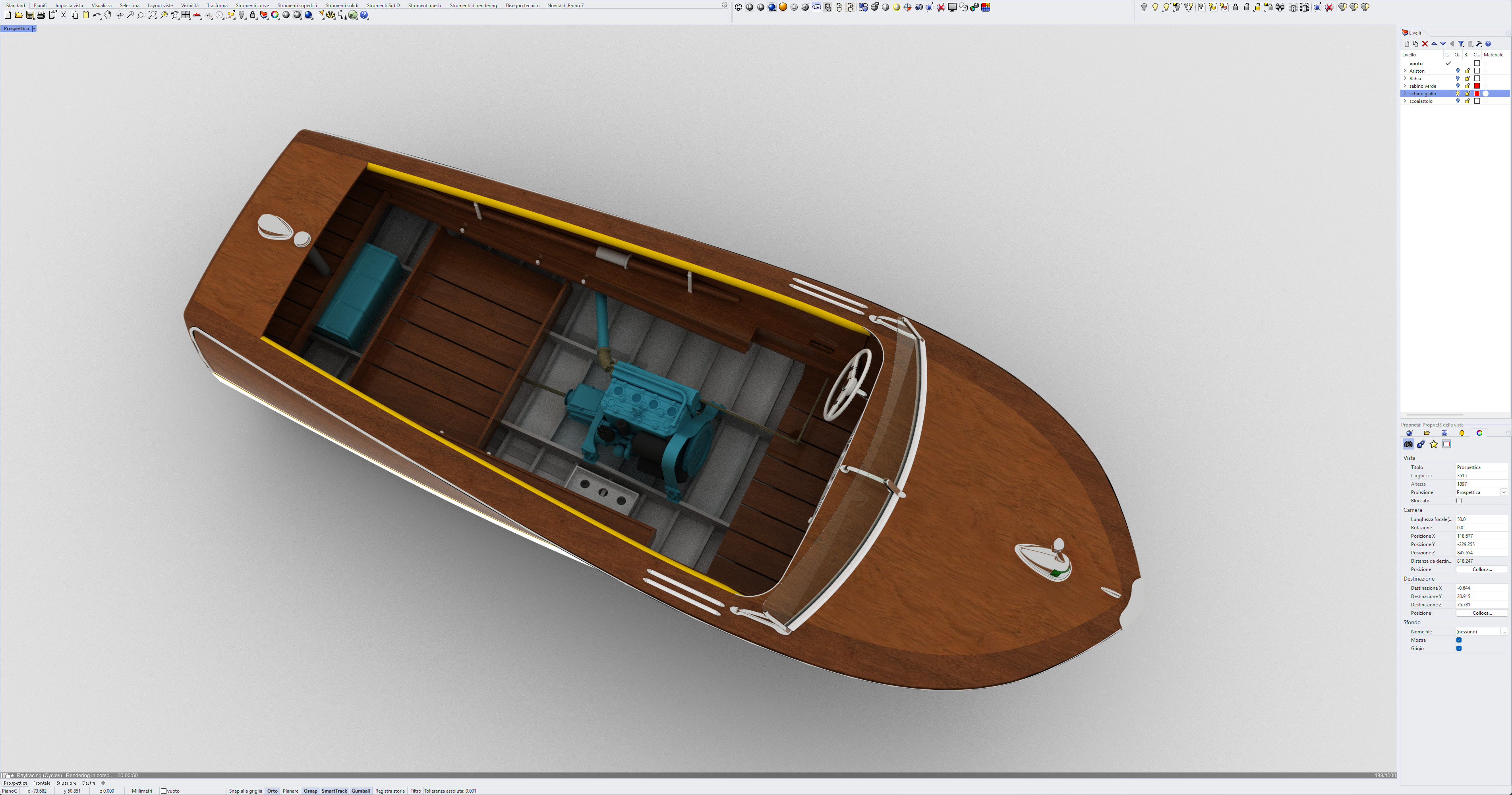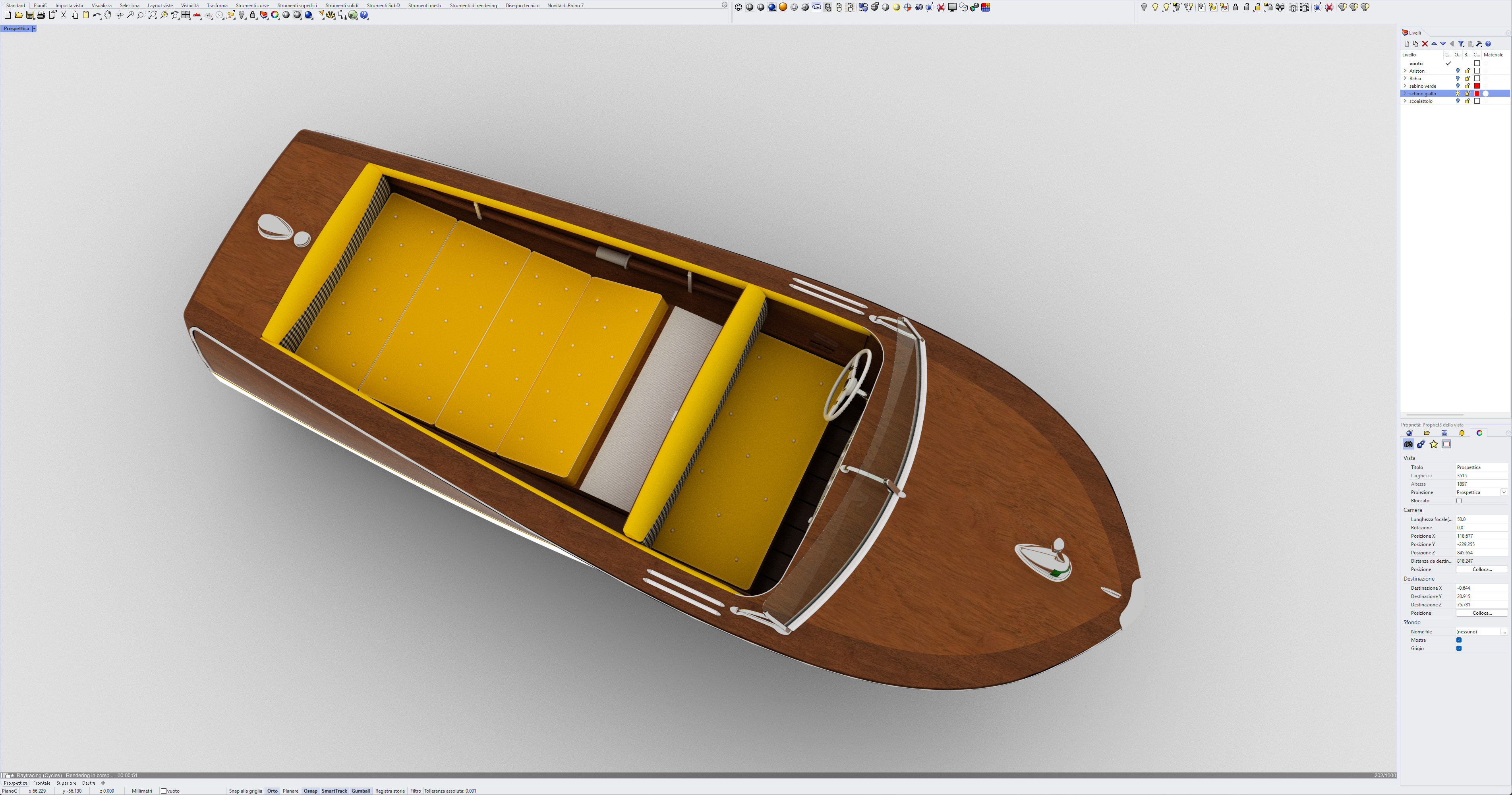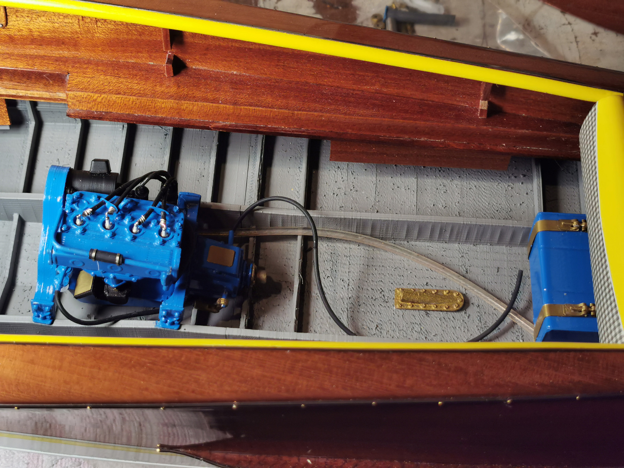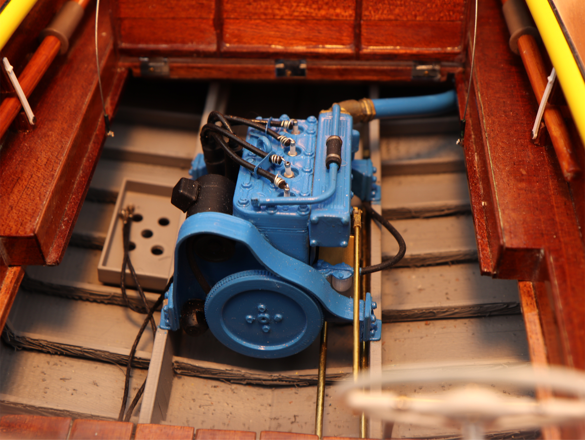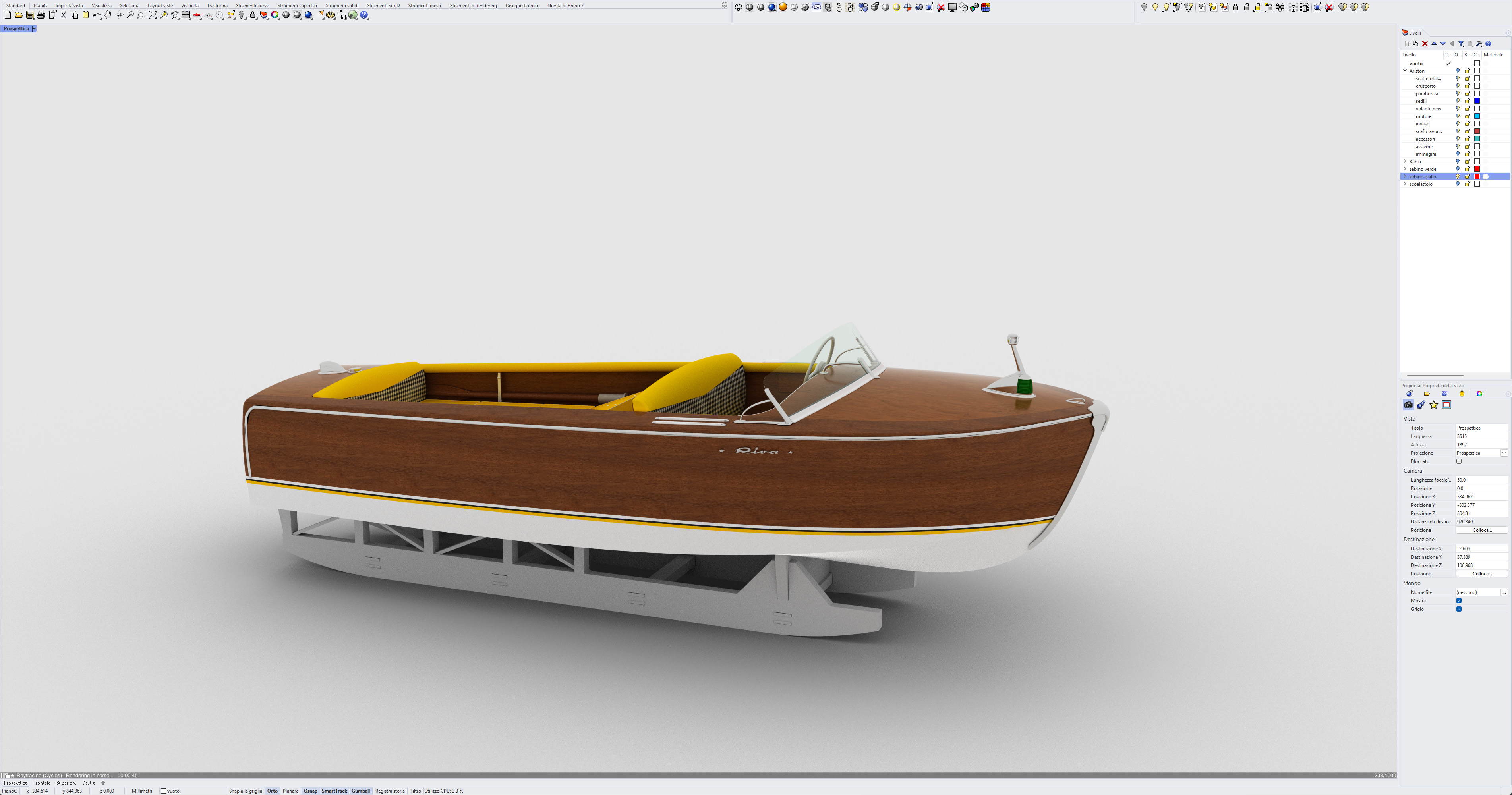 This was the first boat designed exclusively for series production using a 60 Hp Chris-Craft engine. It was built using Honduras mahogany planking throughout. It was originally made with a two-part frameless glass windscreen, dark green vinyl dashboard and seating, an article holder under the deck and a green fabric sunbed. From the 1953 series the inner panels were lined with padded green vinyl and the windscreen was in a single piece. The number of frames was increased in 1955 and their centre distance set at 16 cm. A new steering box made of bronze with stainless steel parts and a Monel propeller shaft were fitted. The side planking was installed with the aid of adhesives. The bottom was fitted using corrosion resistant Phillips cross-head screws. From # 98, at the end of 1956, the bottom was a single piece of plywood and, from 101, the decking was also made of plywood, with inlaid veneers. The 1957 series is also typified by the wrap-around glass windscreen.