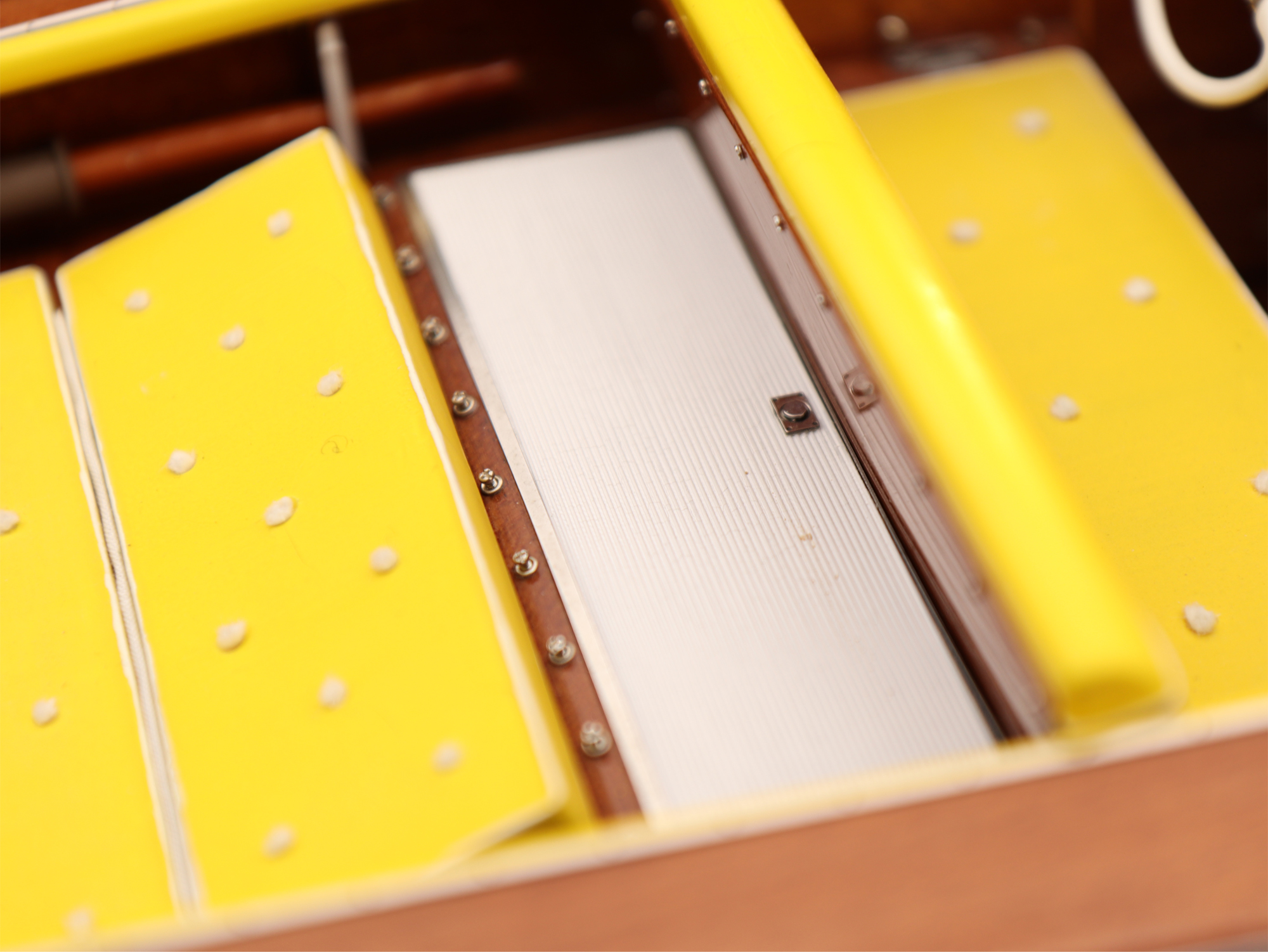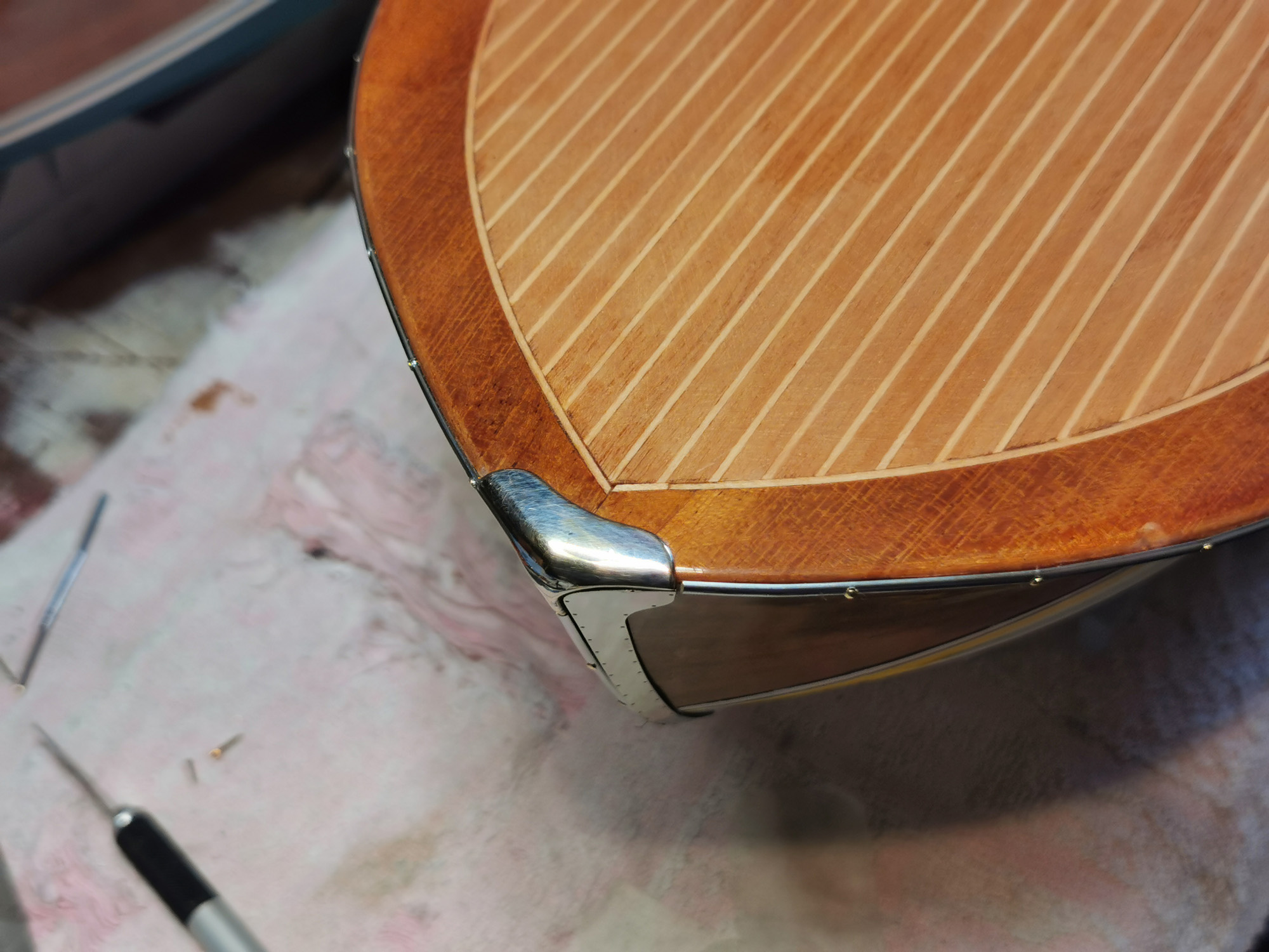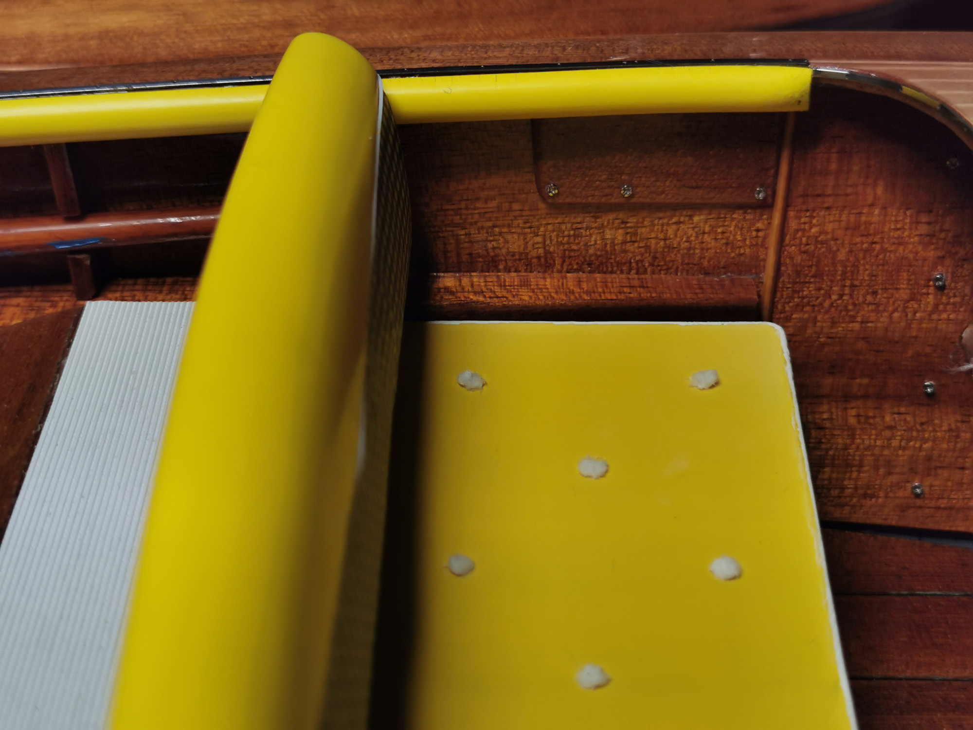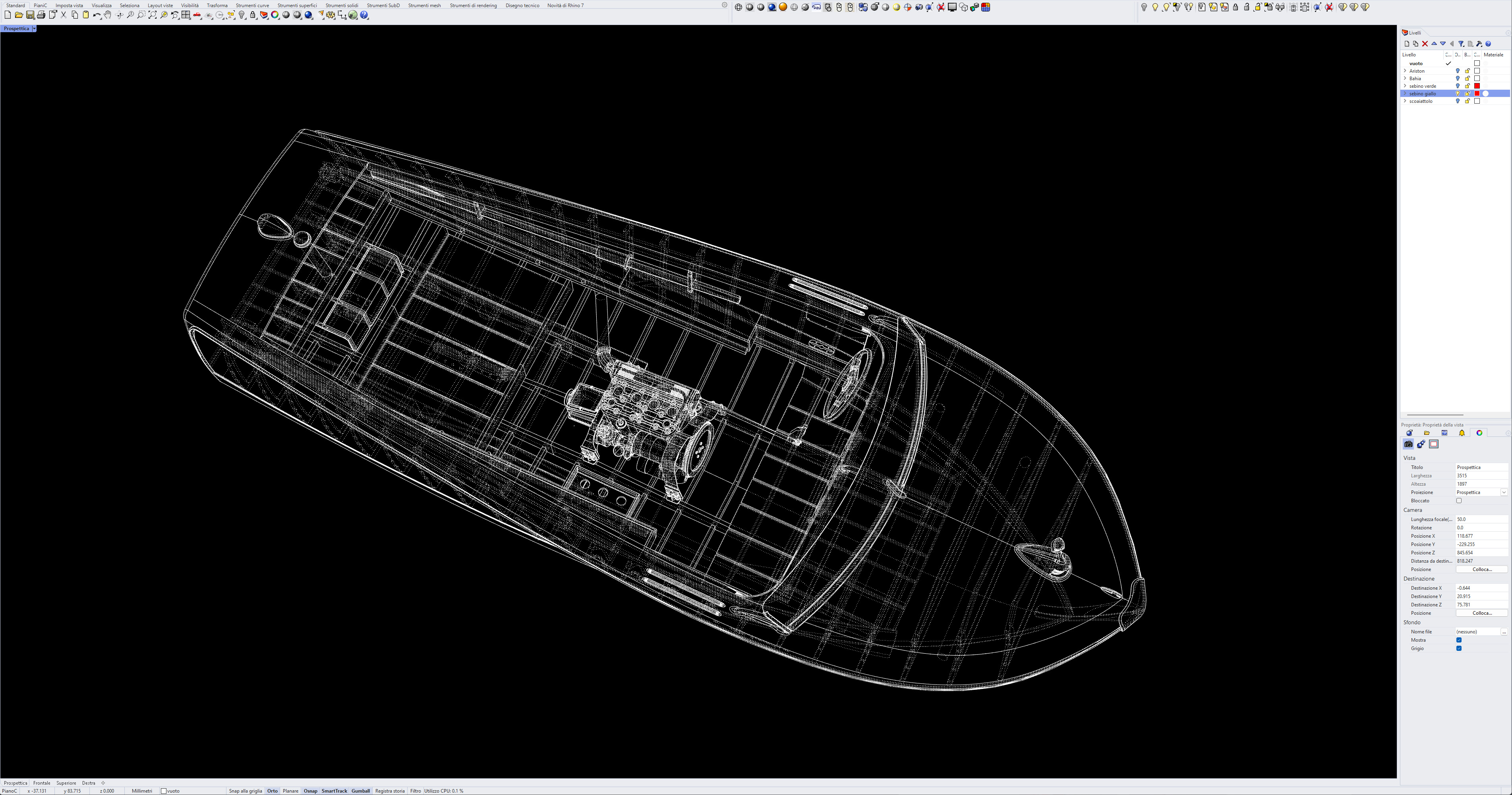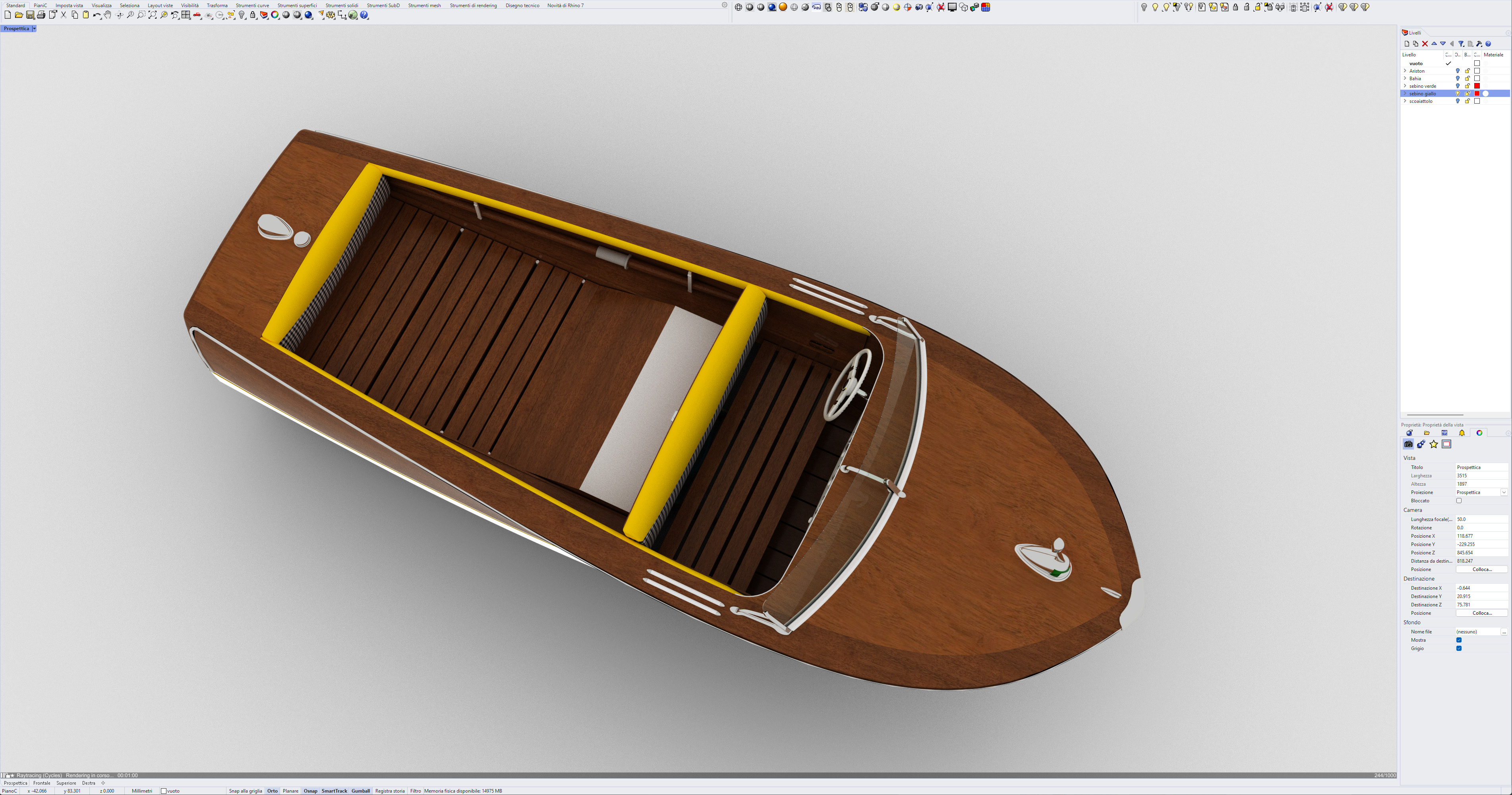 This was the first boat designed exclusively for series production using a 60 Hp Chris-Craft engine. It was built using Honduras mahogany planking throughout. It was originally made with a two-part frameless glass windscreen, dark green vinyl dashboard and seating, an article holder under the deck and a green fabric sunbed. From the 1953 series the inner panels were lined with padded green vinyl and the windscreen was in a single piece. The number of frames was increased in 1955 and their centre distance set at 16 cm. A new steering box made of bronze with stainless steel parts and a Monel propeller shaft were fitted. The side planking was installed with the aid of adhesives. The bottom was fitted using corrosion resistant Phillips cross-head screws. From # 98, at the end of 1956, the bottom was a single piece of plywood and, from 101, the decking was also made of plywood, with inlaid veneers. The 1957 series is also typified by the wrap-around glass windscreen.
